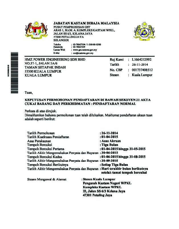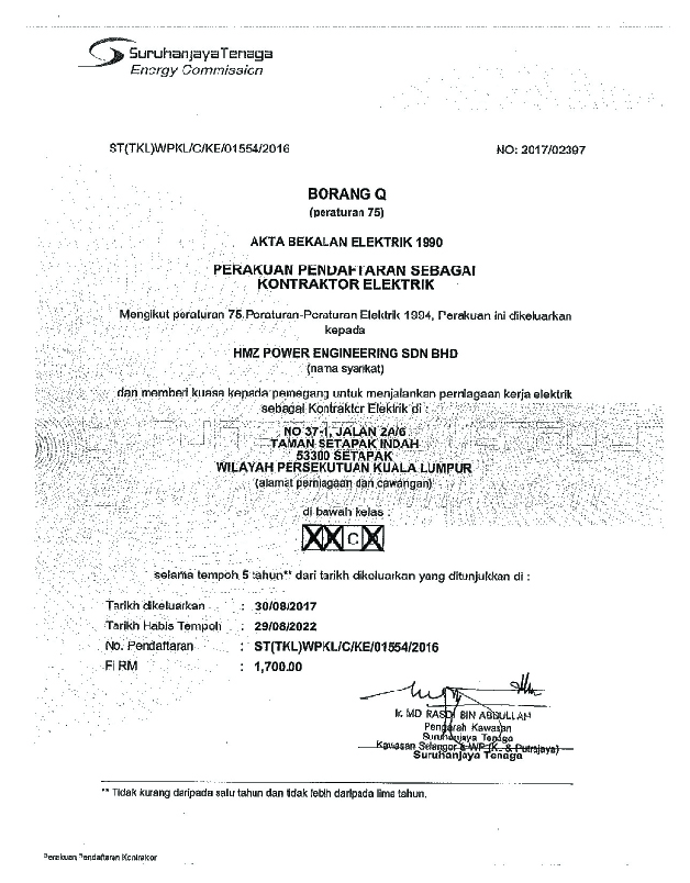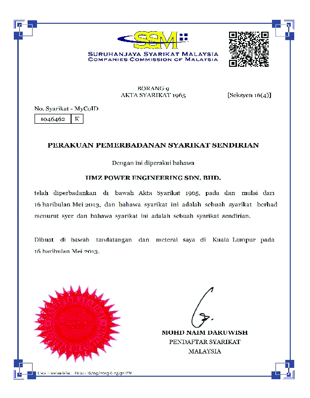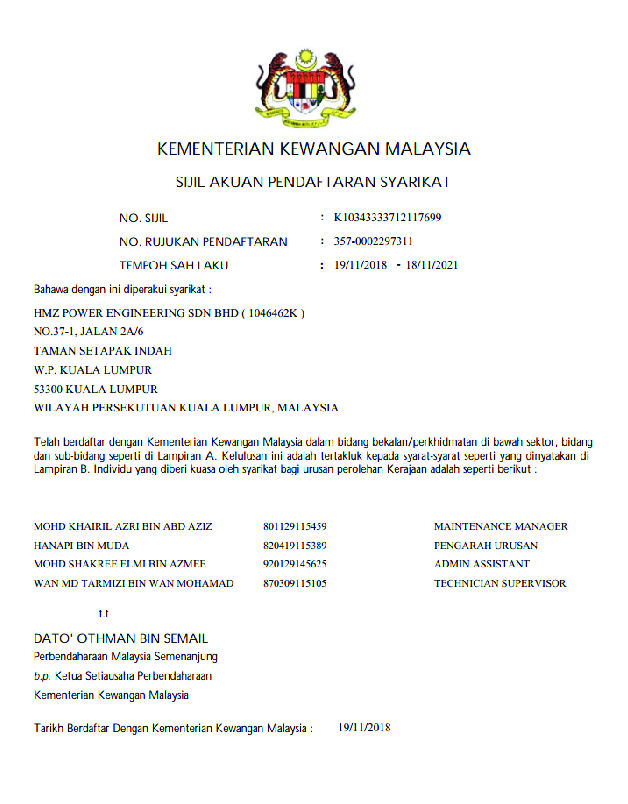 | Company Name | HMZ POWER ENGINEERING SDN BHD |